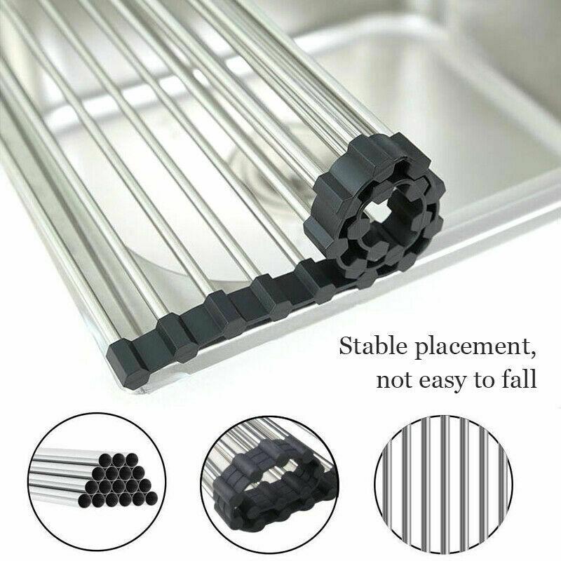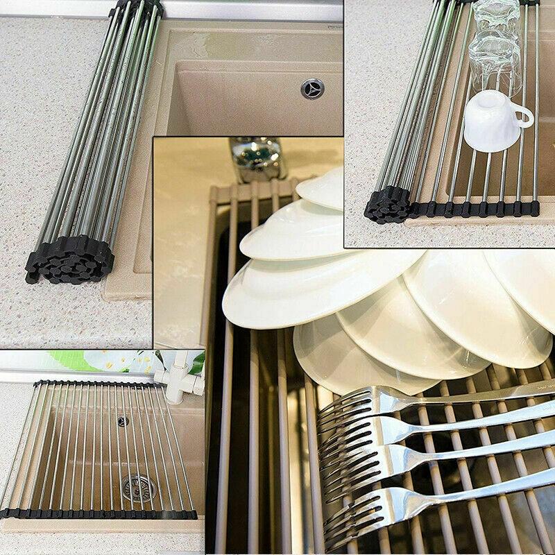 More space for you: An ingenious kitchen accessory that keeps your counters free of clutter by creating a multi-functional workspace directly over your workstation sink. Place it over the sink to air-dry dishes and produce, or use it as a rinsing rack to wash fruits and vegetables with minimal mess water drips directly into the sink without leaving puddles on the kitchen counter.