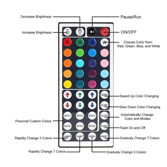 Instantly transform your living room, bedroom, kitchen or anywhere in your house into a light show party! This is the perfect addition to any room that will really make your room unique! We're giving these out 50% OFF! *Limited Stock Available*, Don't miss out! With the multi color remote, the possibilities are endless with all the different color combinations you can imagine. Simply attach the strips to any surface with the adhesive, power it up and enjoy the results!