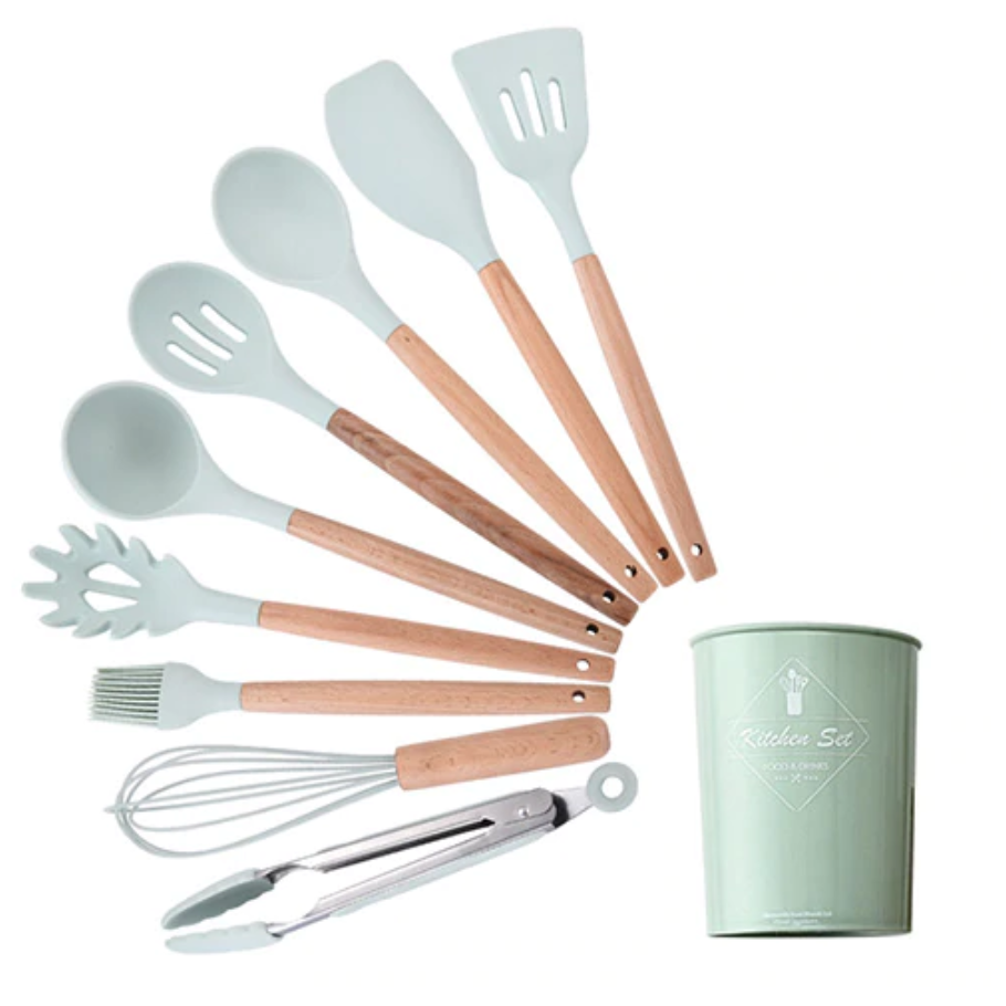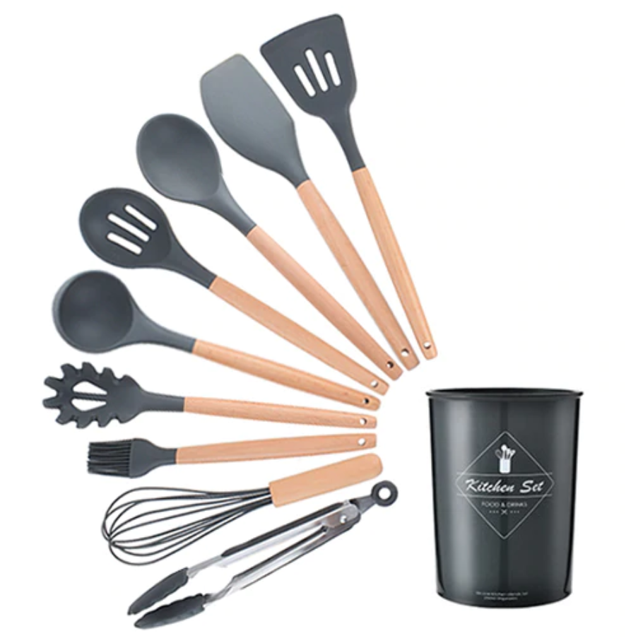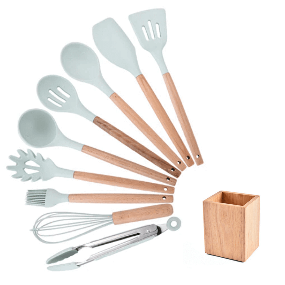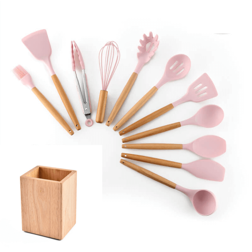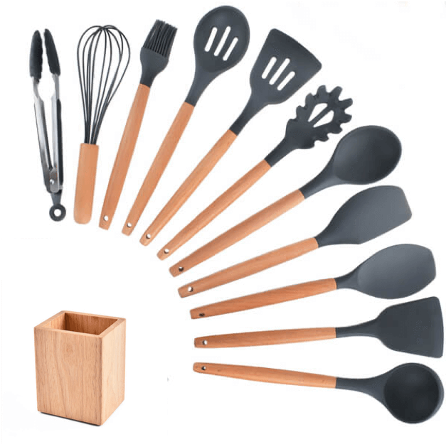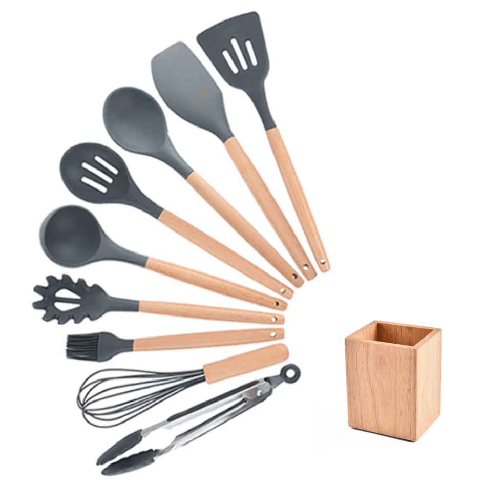 This set of non-stick silicone wood utensil set will make cooking fun and easy than ever. This set is surely the perfect gift for outfitting a new kitchen or simply updating an existing collection. Each utensil features a task-defined blade made from premium non-stick silicone, bamboo wood handle 12 Piece Set!