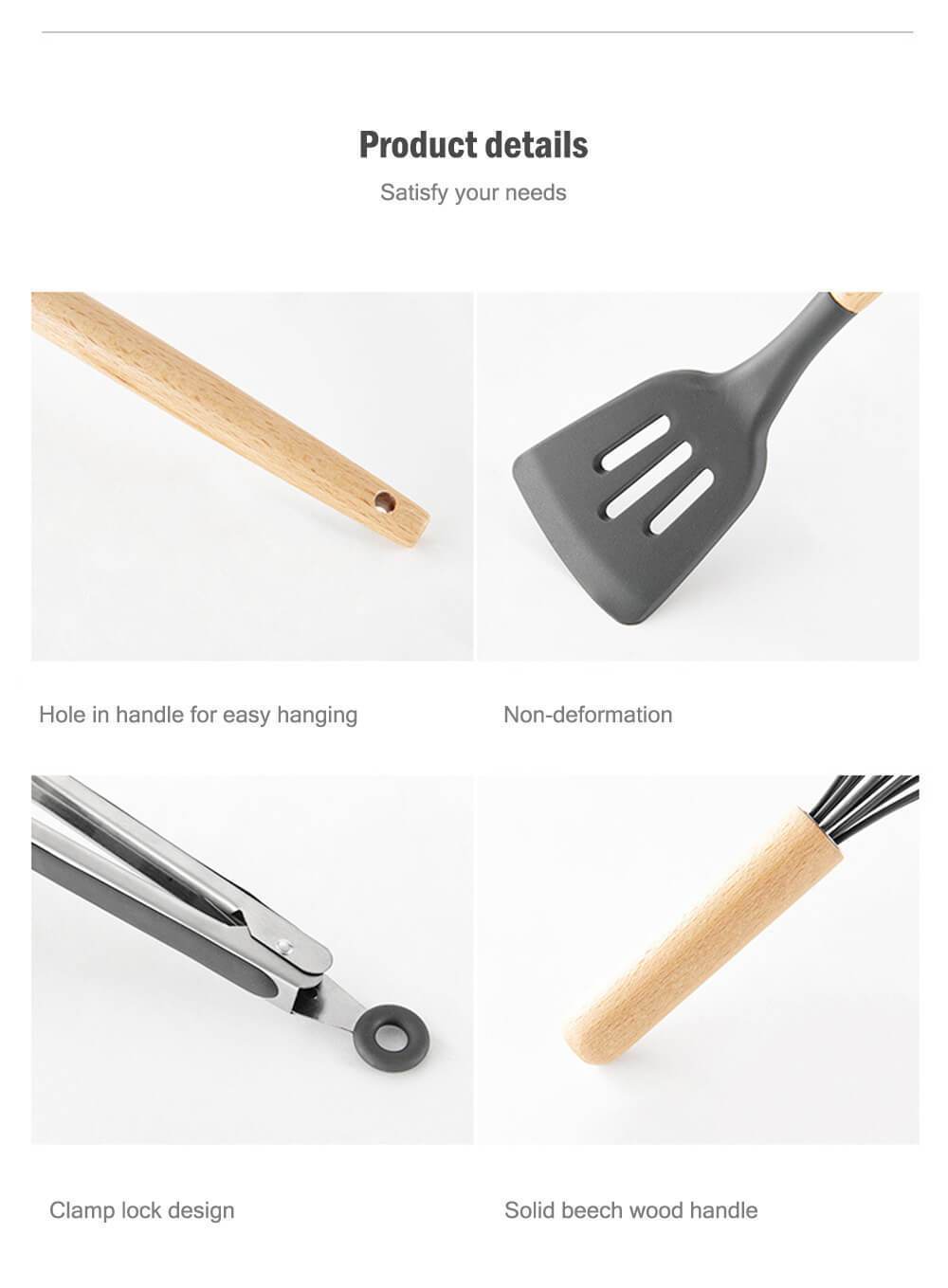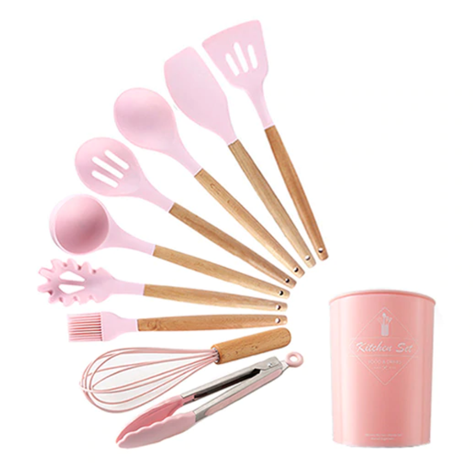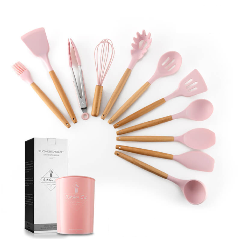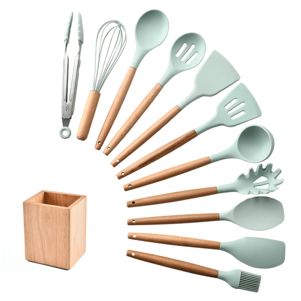 This set of non-stick silicone wood utensil set will make cooking fun and easy than ever. This set is surely the perfect gift for outfitting a new kitchen or simply updating an existing collection. Each utensil features a task-defined blade made from premium non-stick silicone, bamboo wood handle 12 Piece Set!