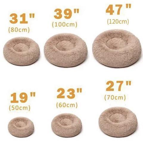 When choosing your pet’s bed, we would recommend the 60cm for cats or small dog breeds up to 19lbs. The 70cm bed is suitable for dog breeds up to 39lbs. The 80cm bed is suitable for dog breeds up to 55lbs & 100cm is perfect for breeds up to 66lbs.